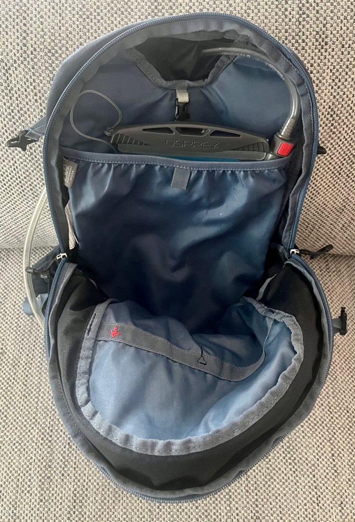 - Can fit a 2 liter water reservoir (sold separately) which came in handy in the summer while hiking and touring