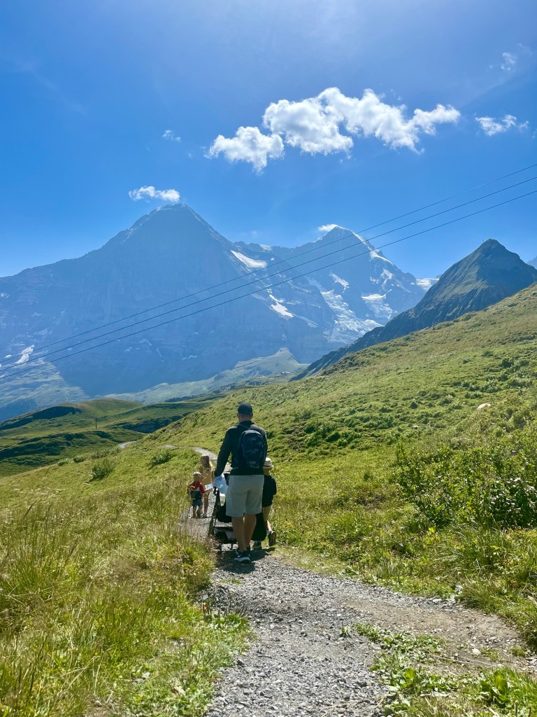We then turned left and followed the Royal Walk trail to hike up to that point. It was not the easiest hike for the kids but they did a great job and all of us made it up there to take in the breathtaking views. From there you not only see the mountain peaks but also of the Lauterbrunnen Valley including views of Lauterbrunnen itself as well as Wengen.