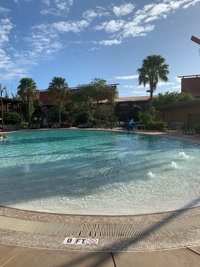 All Disney Resort Hotels have multiple pools to enjoy when you are not at the parks. Most of these resorts offer a “feature pool” which is the largest pool at the resort as well as smaller satellite pools. Some Moderate and most Deluxe Resorts will typically also have a waterslide that you can ride on into the feature pool. Some resorts also have areas reserved for younger children to play in an such as a splash pad or a lower depth aquatic play area.