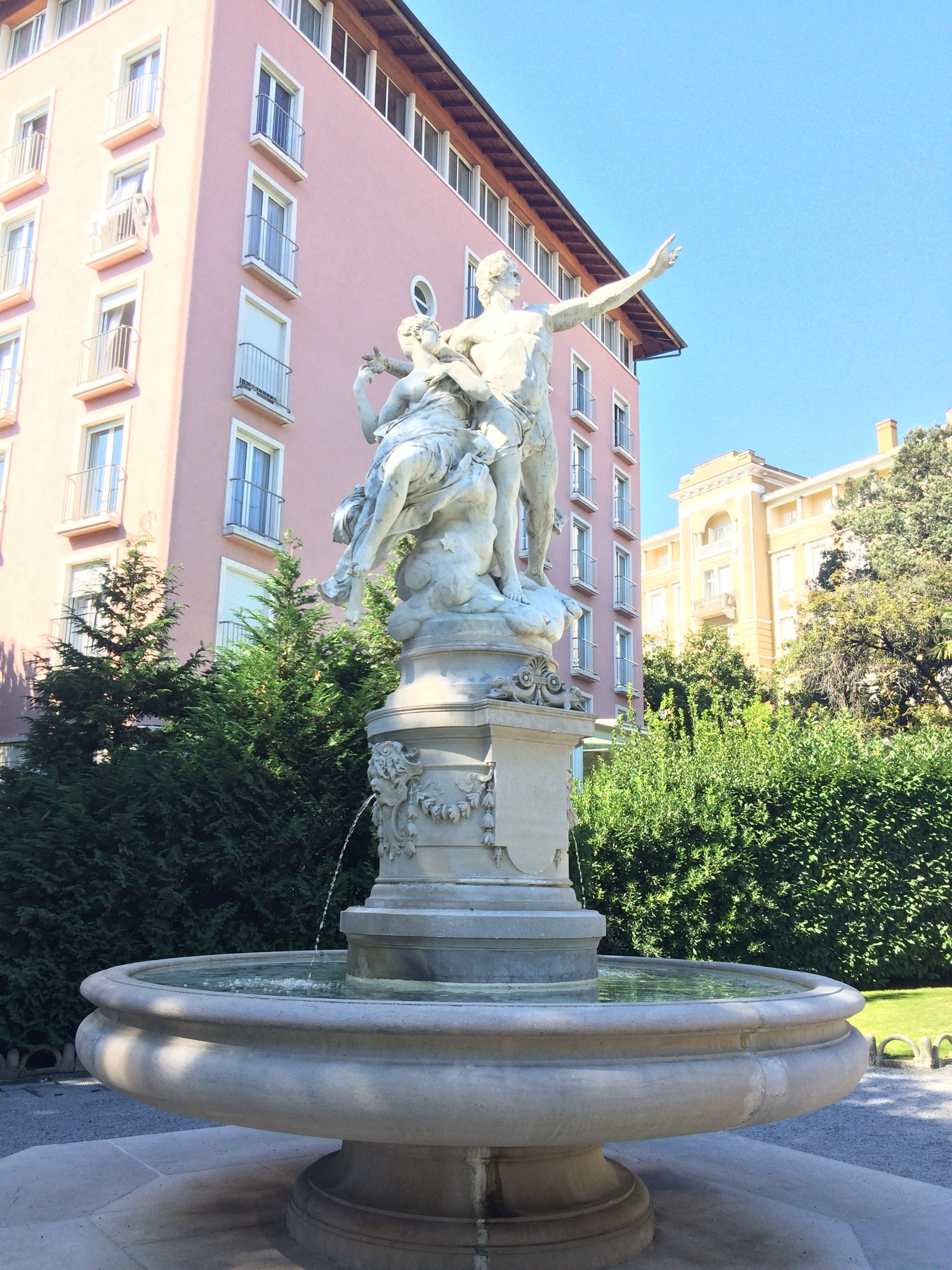 We then walked up to the Hotel Kvarner, which is the oldest hotel on the Adriatic. This area of Opatija was very opulent as the hotel was beautiful and there was a nearby park that had a very decorative fountain in the center. We let our daughter run out some of her energy before getting some lunch and then headed out for our next destination, the historic town of Pula.