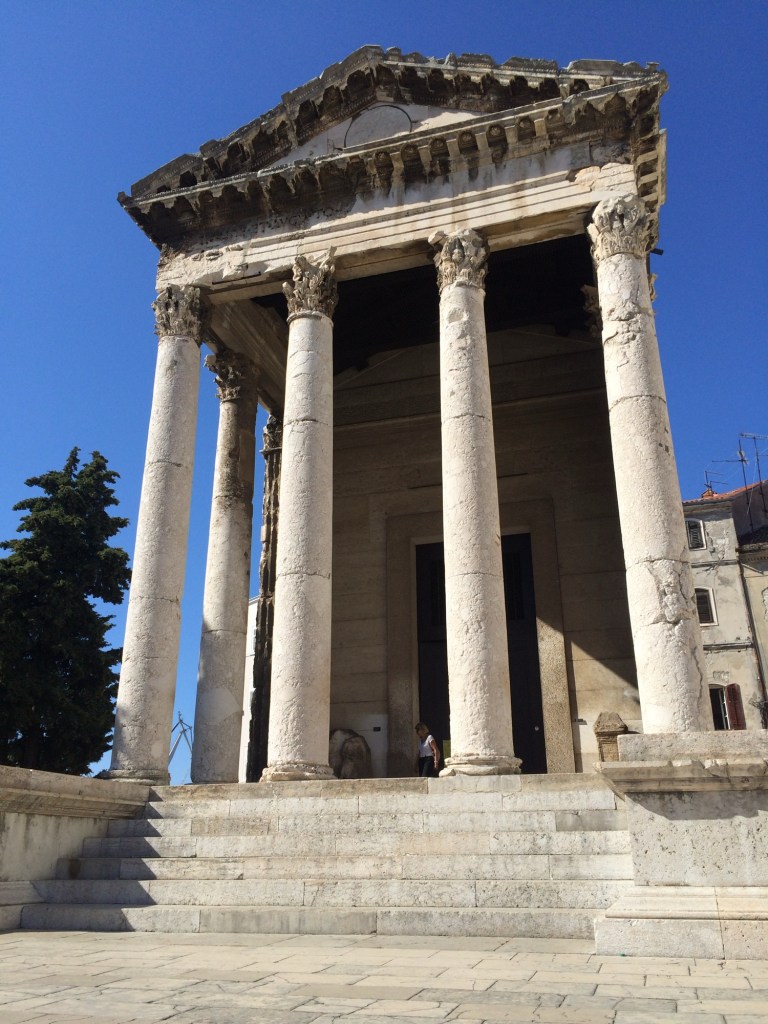 Pula was just a little over an hour drive from Opatija, which allowed us to enjoy the scenery and anticipate our visit to see some old Roman architecture and ruins there. We parked outside the old town, taking in the charming surroundings, and then walked to see the Temple of Augustus, marveling at its historical significance and intricate details.