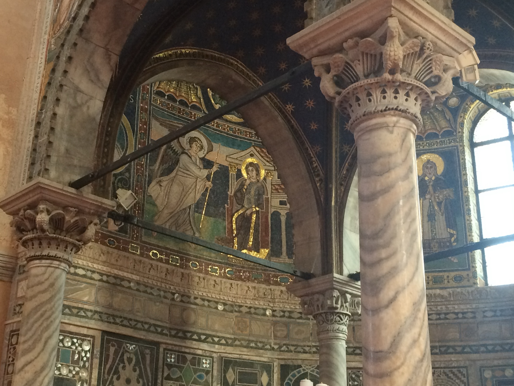 The Punishment of Dirce floor mosaic (left) and the Church of St Maria Formosa (right)