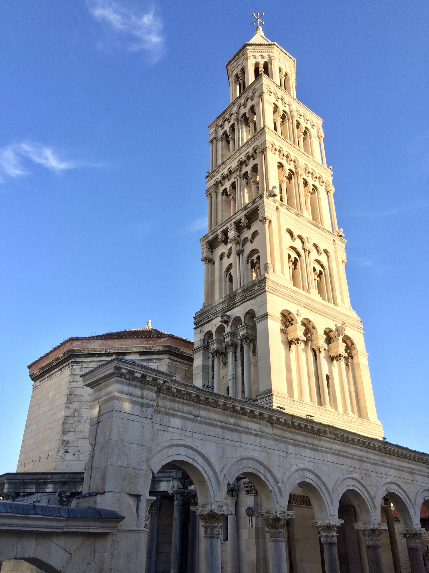 View of the old town of Dubrovnik (left) St. Domnius Bell Tower in Split (right)