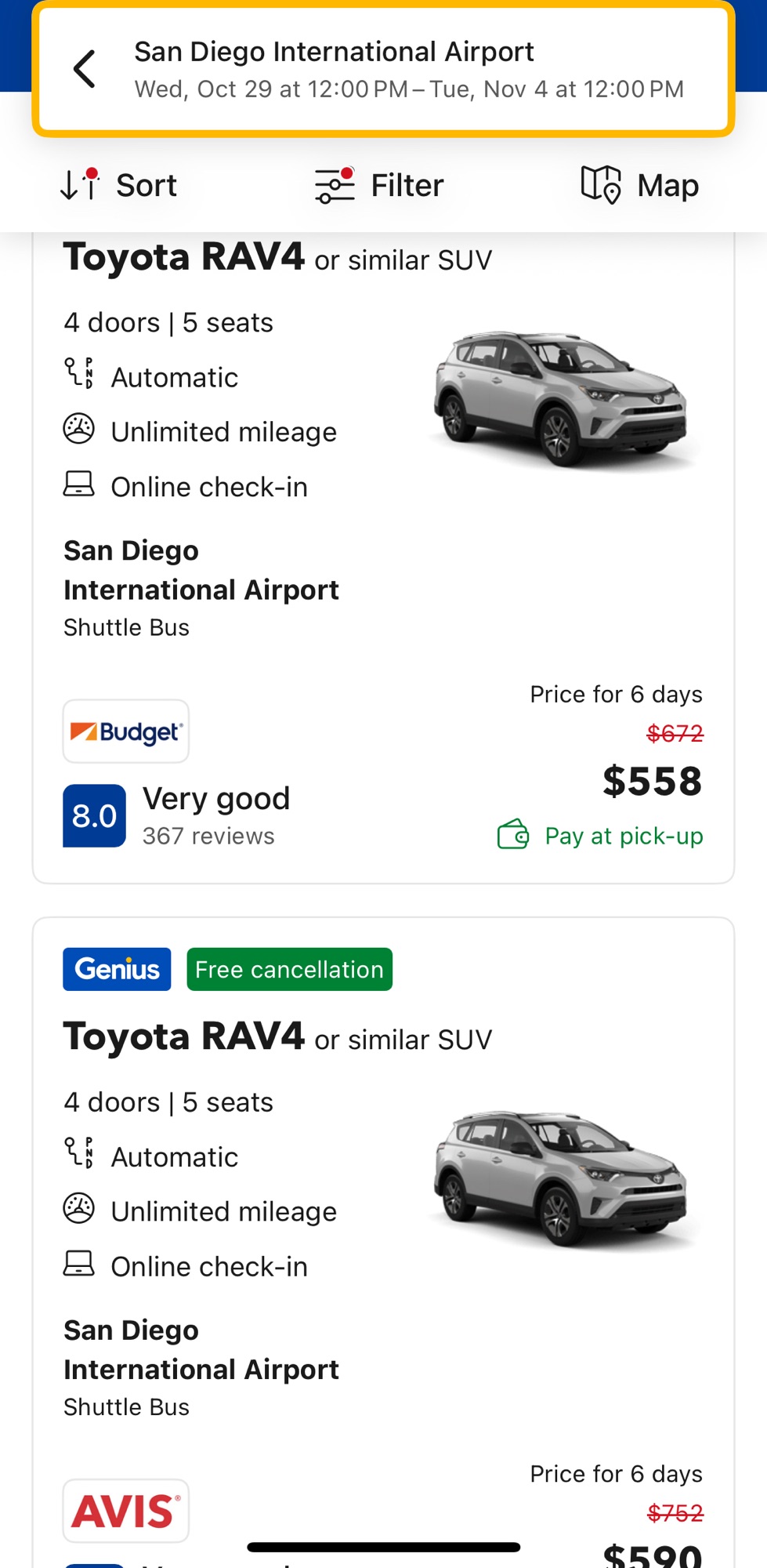 Comparing prices using same search parameters on Costco Travel (left) and Booking.com (right)