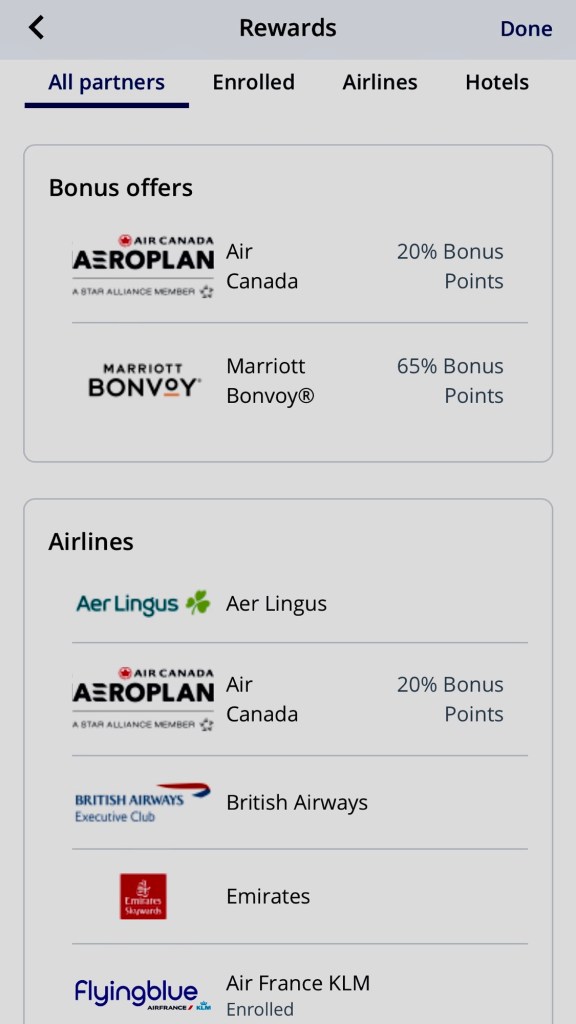 - Transfer miles to KLM/Air France, Air Canada, Virgin, British Airways and more