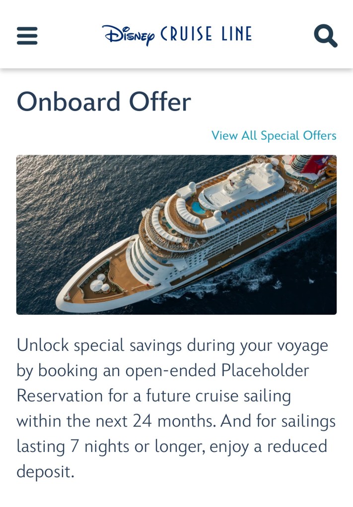 And if you’re cruising with Disney, don’t forget—you can put down a refundable placeholder reservation before you depart the cruise to lock in a discounted fare (10% off!) on your next cruise that is good for two years!. It’s an easy way to save if you’re already dreaming about your next adventure at sea.