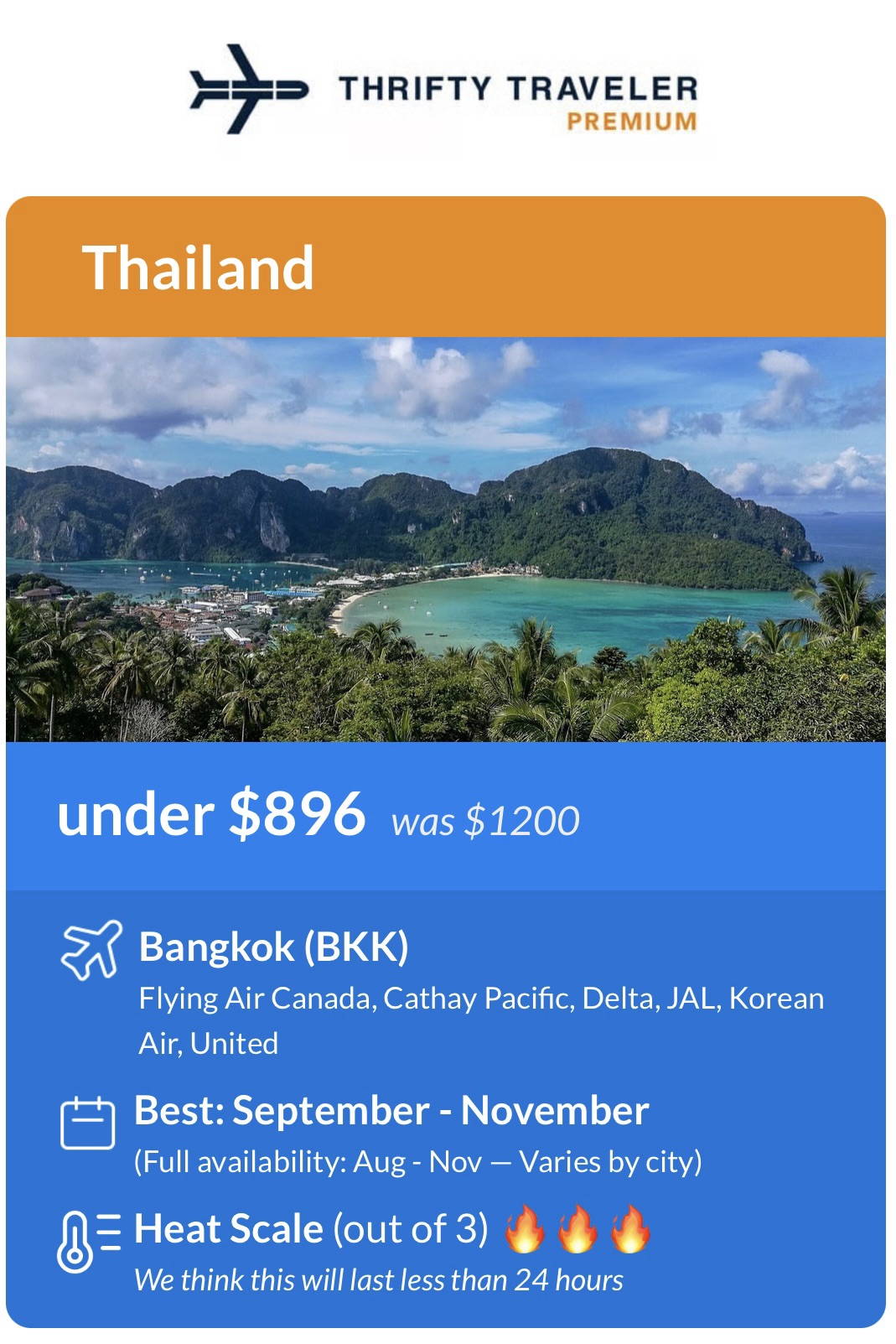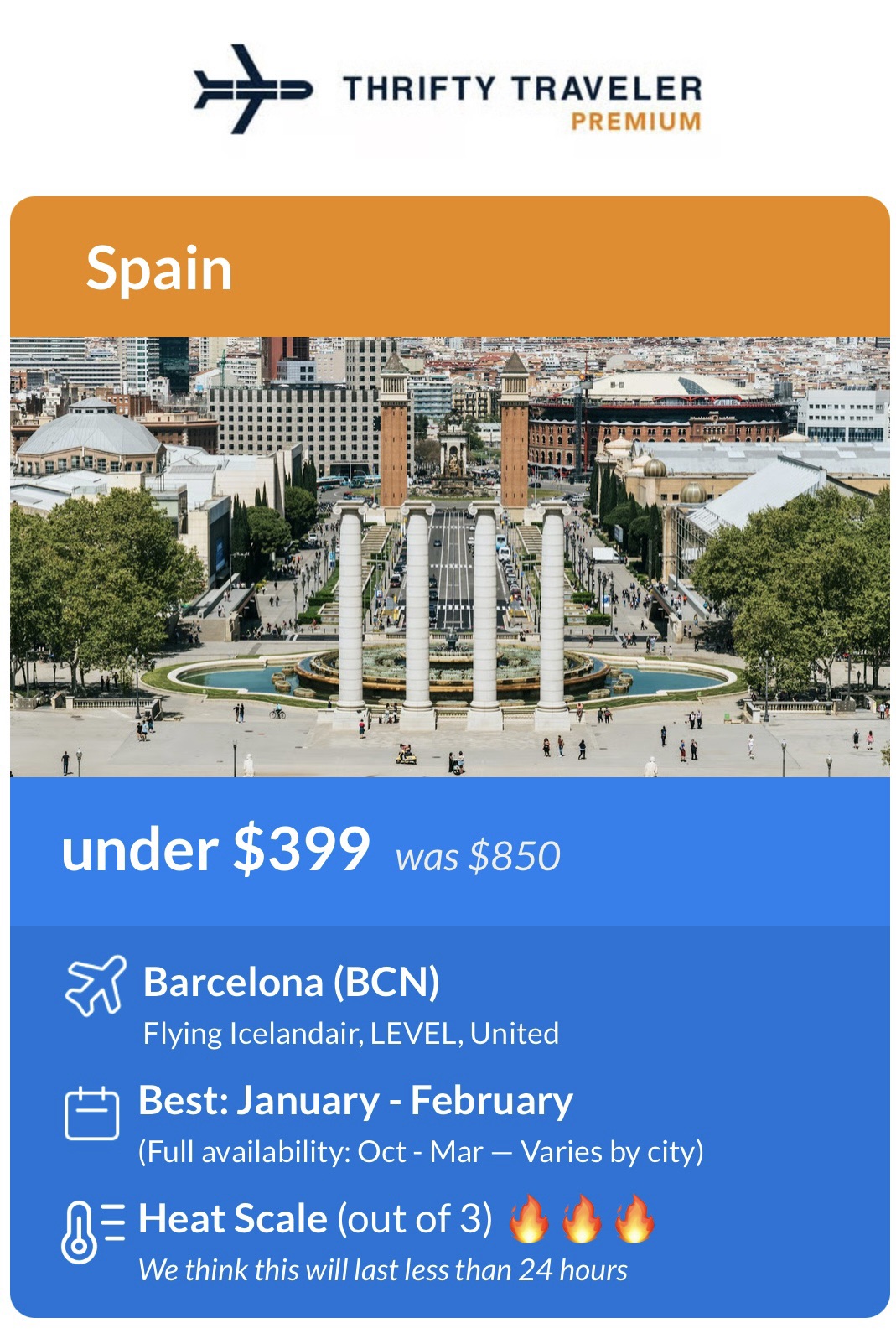 Pro Tip: Use Thrifty Traveler Premium to get the alerts on flight deals—often before they hit the search engines. The best deals are the ones with 🔥🔥🔥 in the email! Then cross-check prices with Google Flights to find the best dates and compare options.